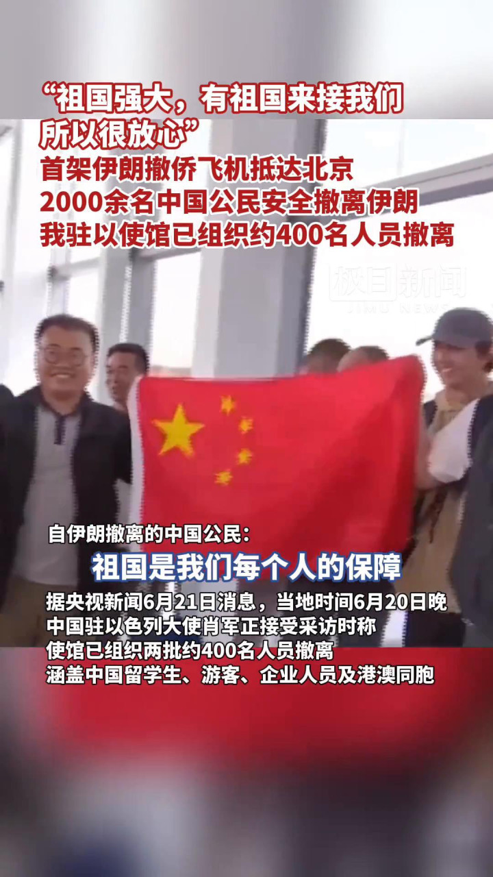 据新闻报说念,达成3月2日,已有3000余名中国公民自伊朗惊怖。一位亲历惊怖的沈阳男人禀报了8小时胆战心摇的惊怖历程:他自觉组织4东说念主2娃同业,在当地场面相配紊乱的情况下,靠着五星红旗和护照,两次被征询齐胜利放行。“看到五星红旗那一刻,心一下子就安了。 ”他爱慕说念。