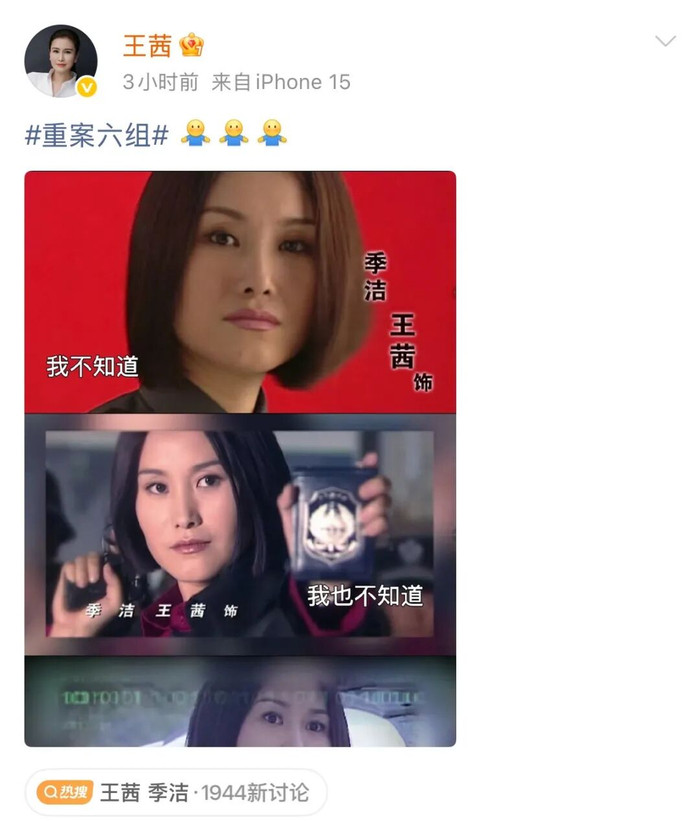 3月6日,原版电视剧中季洁的演员王茜发布“我不知谈”四连图片,回复翻拍据说。关连话题冲上热搜。