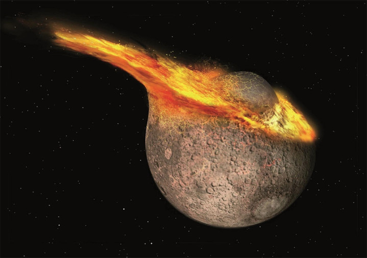 45亿年前,太阳系刚酿成不久,行星轨谈还莫得健硕下来,无数小行星、彗星在太阳系内横行雕悍,就像一个“紊乱的战场”,忒伊亚因为轨谈偏移,渐渐向原始地球策划,最终以约45°的倾角、每秒不到4公里的速率,和原始地球发生了正面碰撞,这是太阳系历史上最惨烈的一次撞击,被科学家称为“大碰撞事件”。