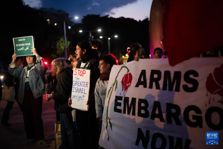 3月7日,东说念主们在特拉维夫的一处广场举行鸠合,抗议以色列的军事行径,条款以色列罢手斗争行径。