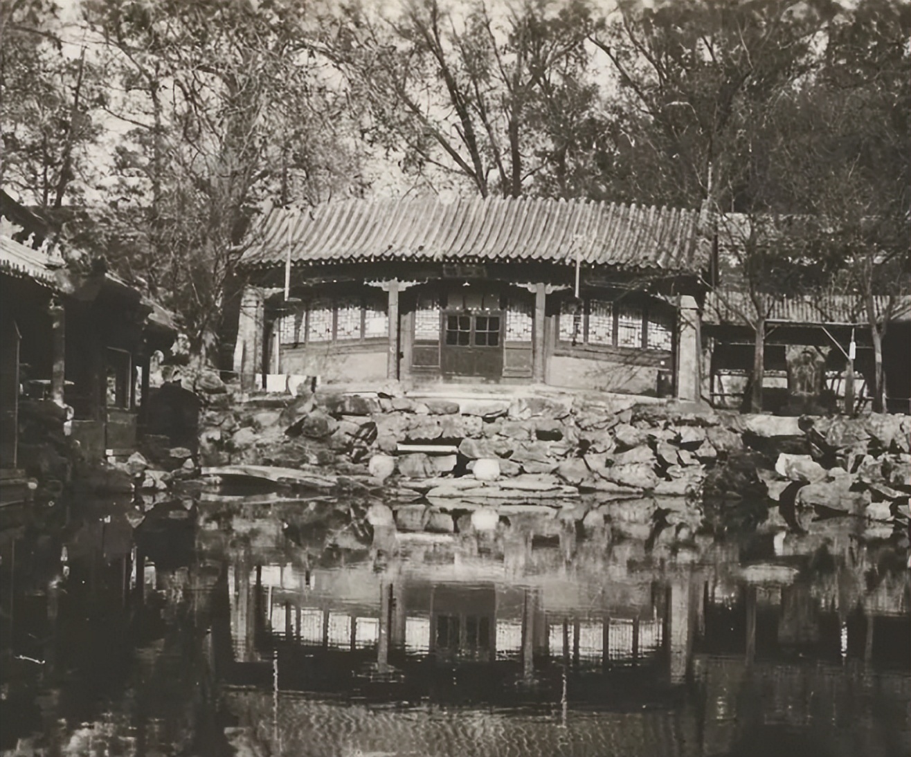 中南海湖水清爽,垂柳低落,是自然的钓鱼胜地。