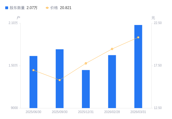 近一年(2025年3月31日至2026年3月31日),联科科技A股鼓励户数从1.63万户,加多至2.07万户,增幅27.04%,区间股价高涨36.75%。
