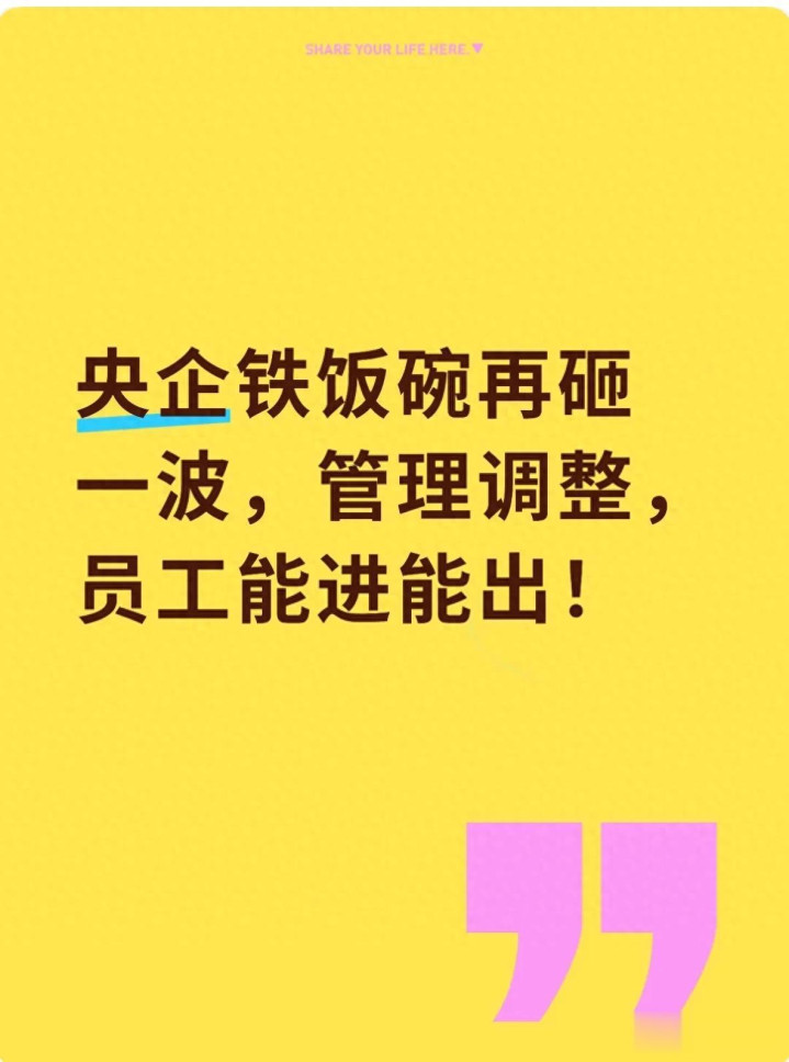 leyu体育 央企铁饭碗再砸一波, 管理调整, 员工能进能出!