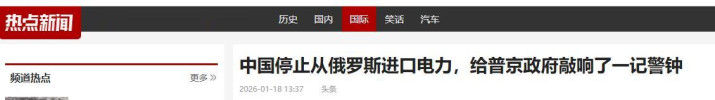 {jz:field.toptypename/}中国停止从俄罗斯进口电力,给普京政府敲响了一记警钟-2026-01-18 13:37-中华网